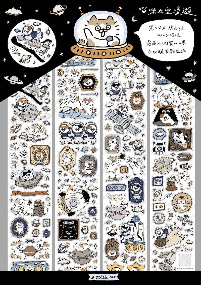 3 小喵咪 ⟡ 喵咪太空漫遊 割型霧面PET膠帶