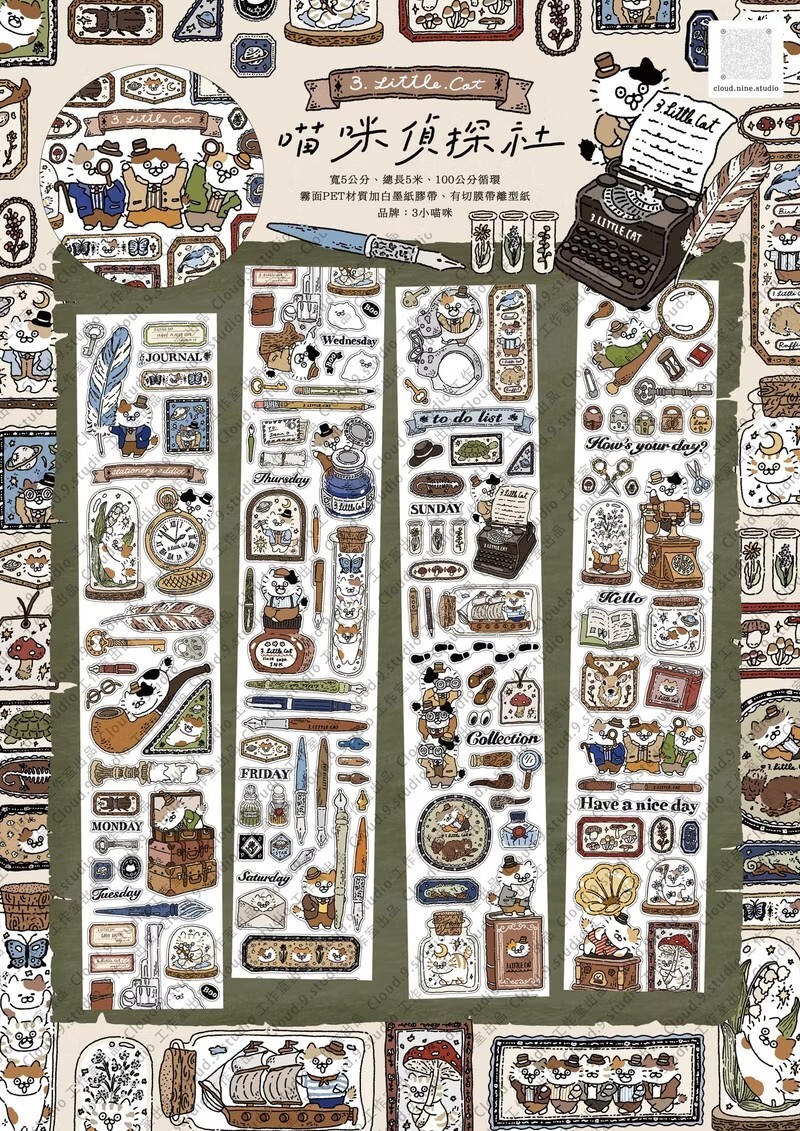 3 小喵咪 ⟡ 喵咪復古偵探社 割型霧面PET膠帶