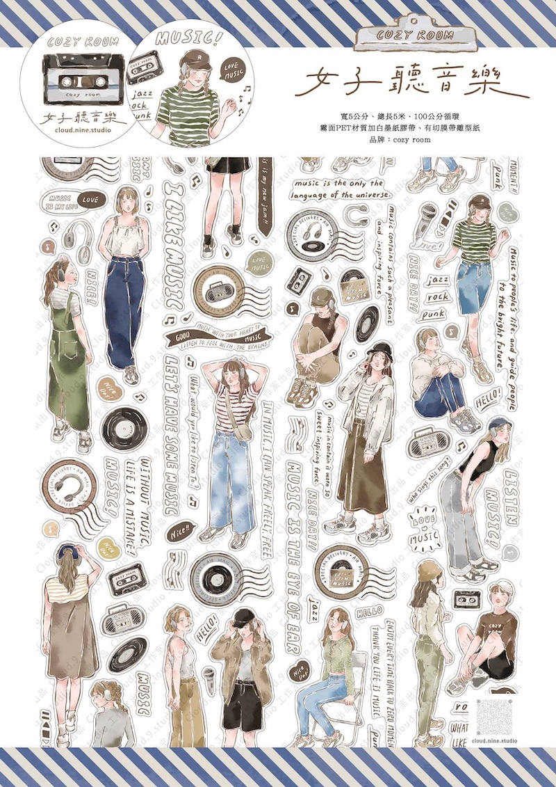 Cozy Room ⟡ 女子聽音樂 割型霧面PET膠帶