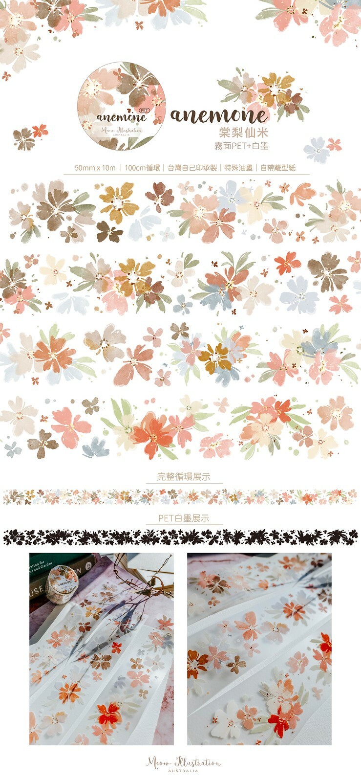 喵大 Meow ⟡ 棠梨仙米 霧面PET膠帶