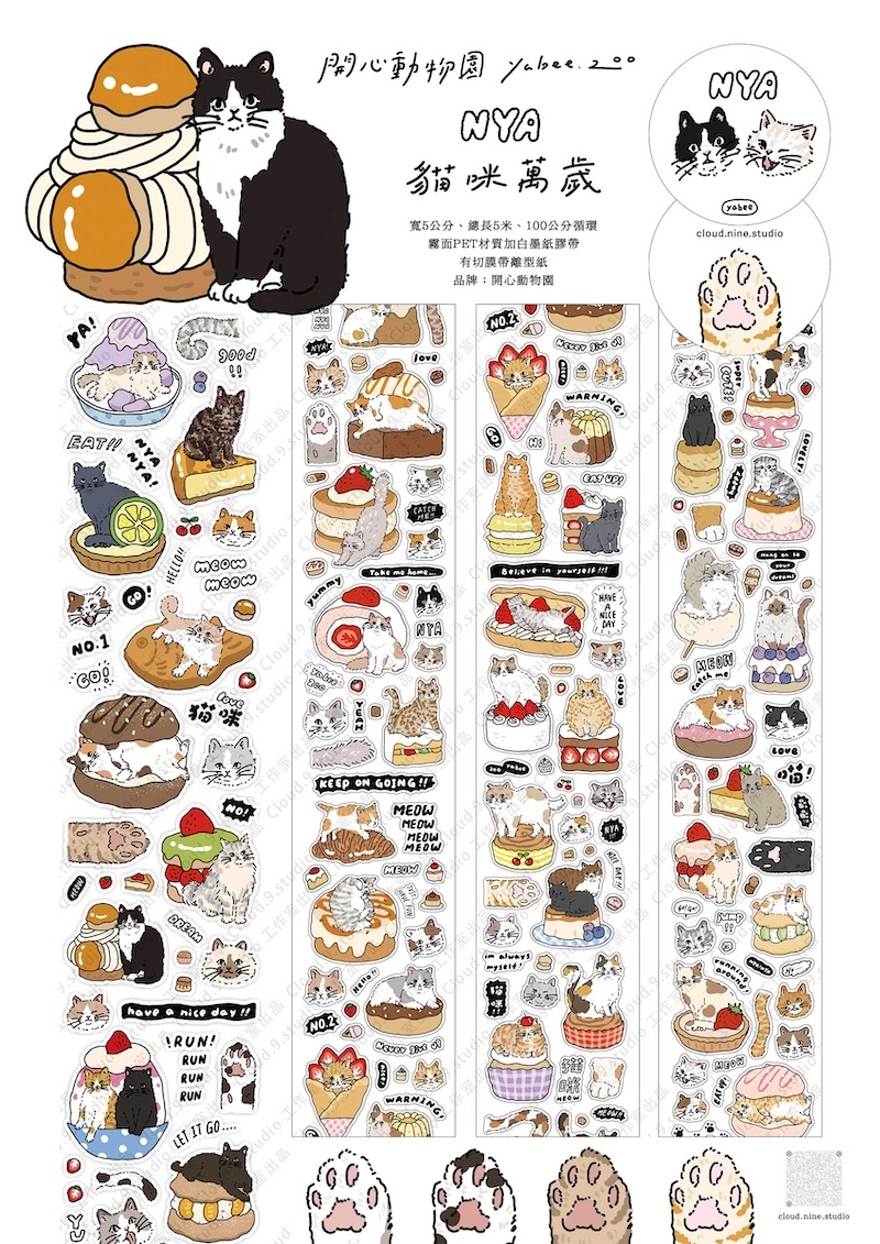 Yabee!開心動物園 ⟡ 貓咪萬歲 割型霧面PET膠帶