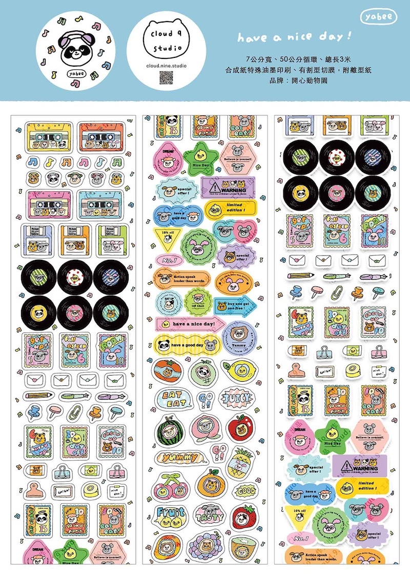 Yabee!開心動物園 ⟡ Have a Nice Day 割型合成紙膠帶